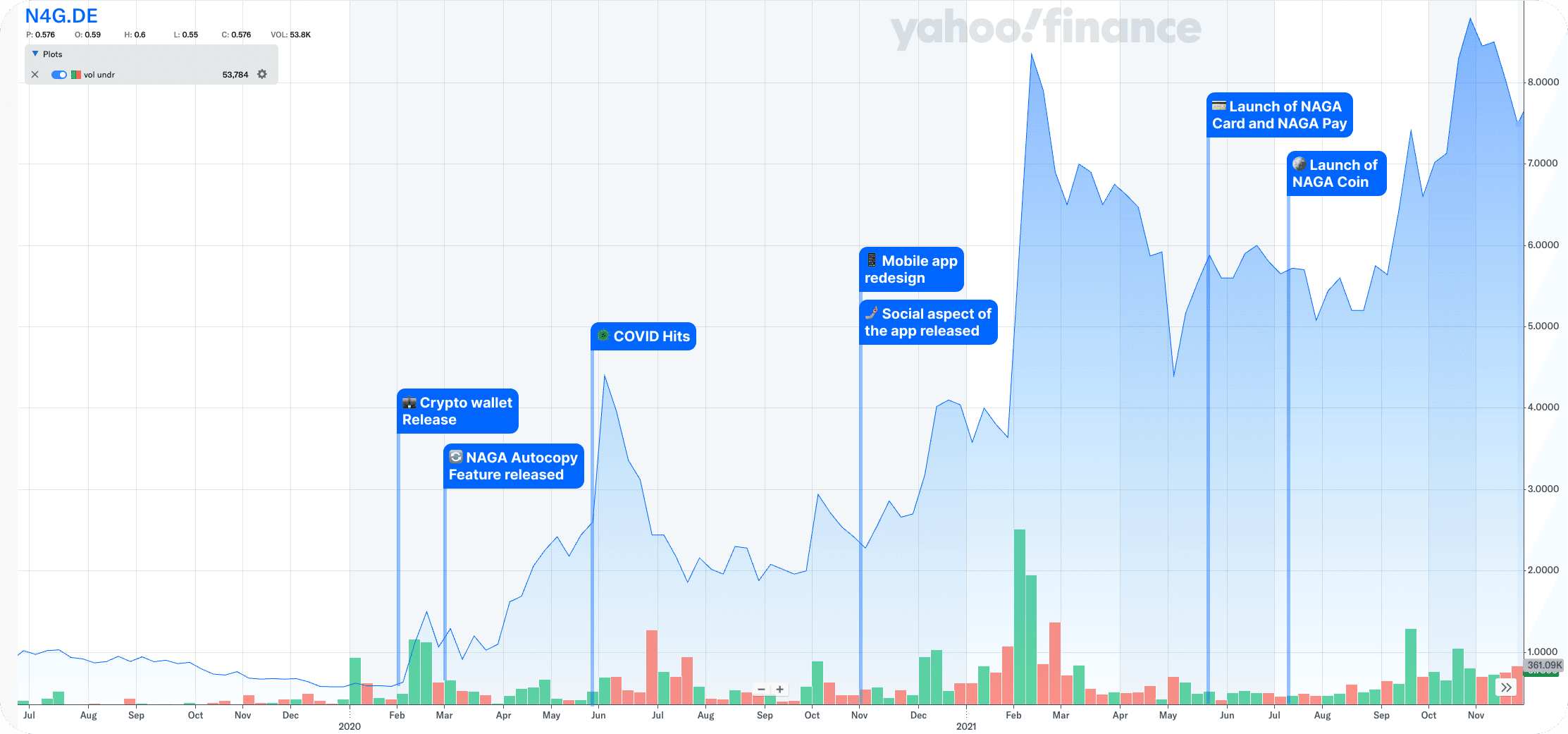 The success of this approach was evident in NAGA's growth from a startup to a company valued at $600 million. The gradual introduction and refinement of features like NAGA Coin and our crypto trading tools played a significant role in this success, with NAGA Coin reaching a market cap of over $120 million at its peak.