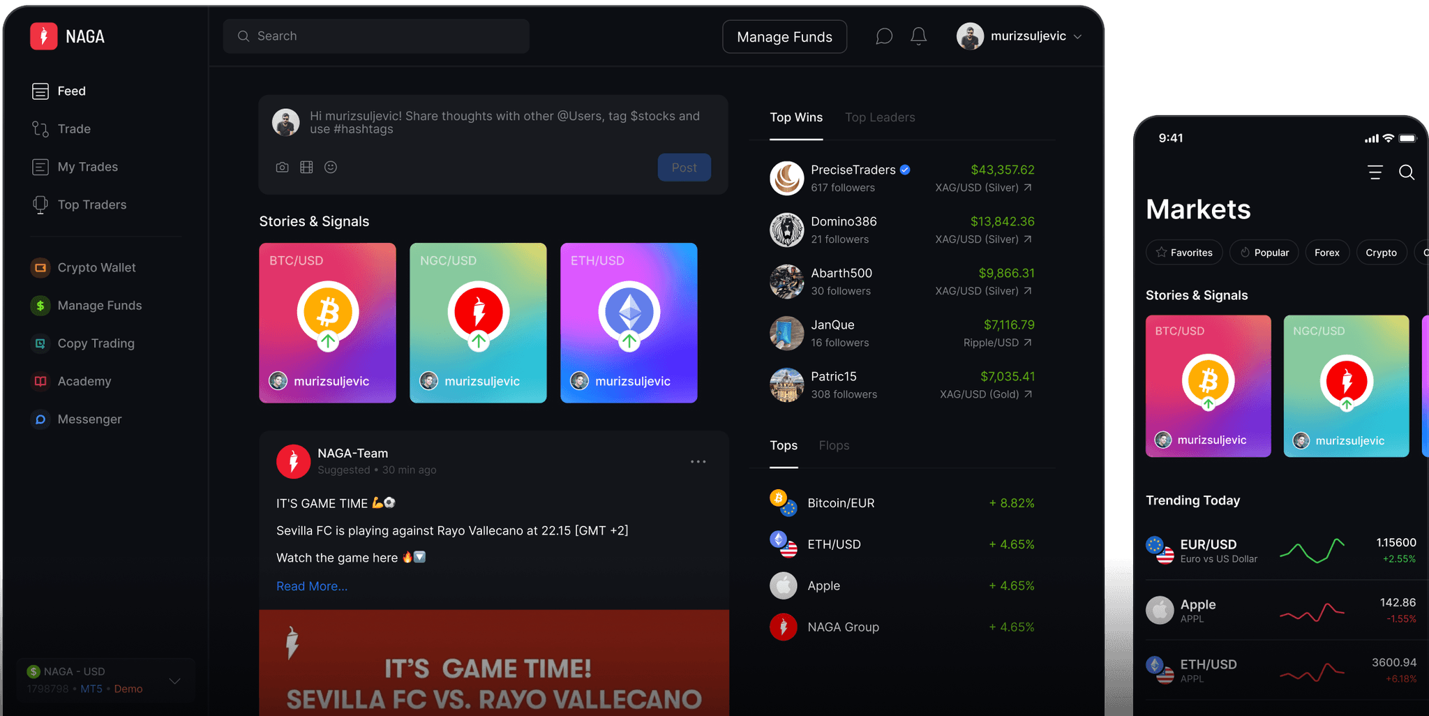 We made NAGA Trader, a new trading platform that fixed SwipeStox's problems and added new features. It has a live ranking board, detailed trader info, flexible copy trading, a social community, and built-in crypto trading with NAGA Wallet and NAGA Coin.